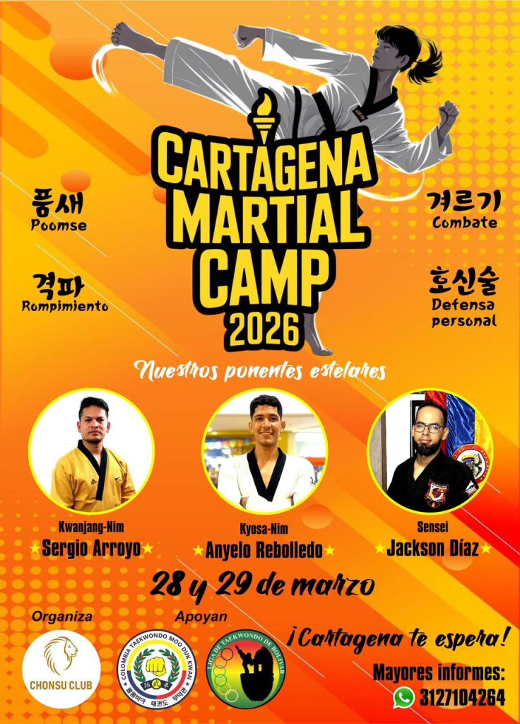 ¿Estás listo para llevar tu Taekwondo al siguiente nivel? Te invitamos a nuestro Cartagena Martial Camp 2026. Un espacio diseñado para guerreros que buscan perfeccionar su técnica y fortalecer su espíritu.
